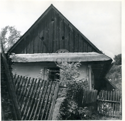 Fotografie - Dům čp. 129, bývalá hrnčírna. Dřevěná roubená a obílená chalupa