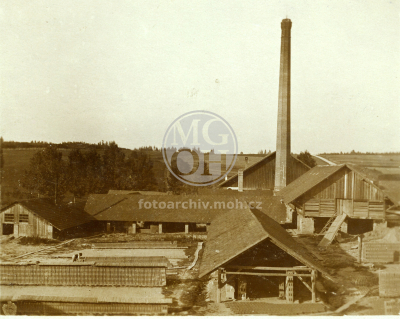 Stavby: mlýn, host., školy, úřady, vily, radnice, domky, cihelna
