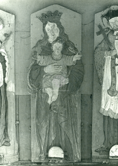 Název fotky: Fotografie - Stavení čp. 42, 12, 24, 38, 41, farský včelín s řezanými fig. svatých