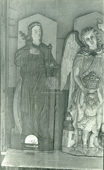 Fotografie - Stavení čp. 42, 12, 24, 38, 41, farský včelín s řezanými fig. svatých