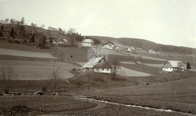 Název fotky: Fotografie - Kostel v Liberku, host. Na kovárně, Černá Voda, Panorama před opr., Vrchmezí, Latzlův mlýn