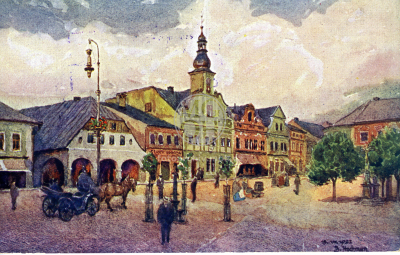 Fotografie - Náměstí - malba Osoba: B. Hochman - 15.8.1922 v pravém rohu dole