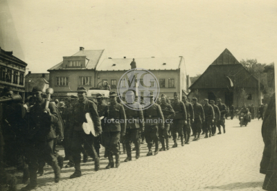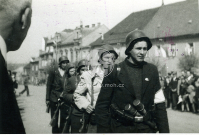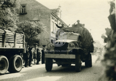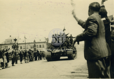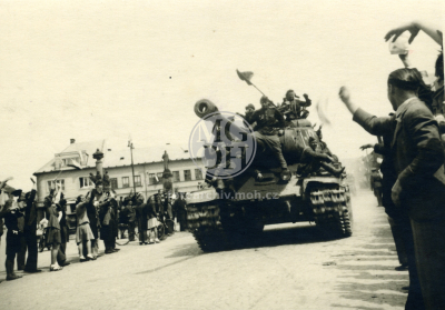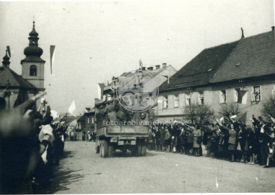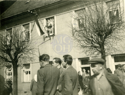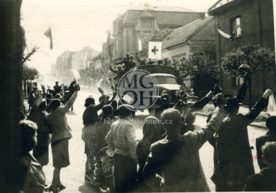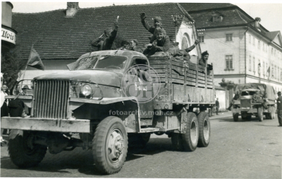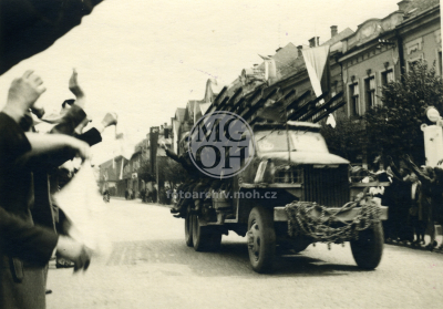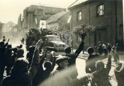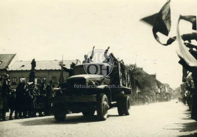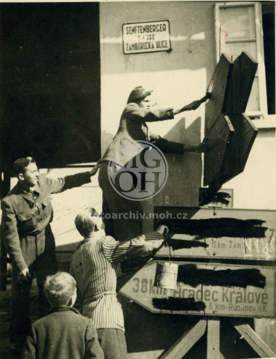 Fotografie - Příjezd Rudé armády, odstraňování německých nápisů