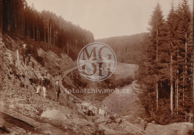 Název fotky: Fotografie - Stavba dráhy Doudleby - Vamberk - Rokytnice v Orlických horách,  za mostem "U Zbraně"